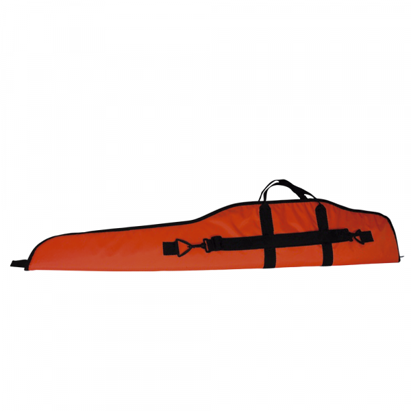 Funda naranja/negra de 120 cm, acolchada y resistente, ideal para carabinas con visor. Cremallera reforzada y asa ergonómica para un transporte seguro