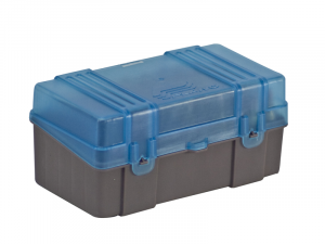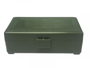 Caja de plástico para munición metálica de rifle y de pistola.